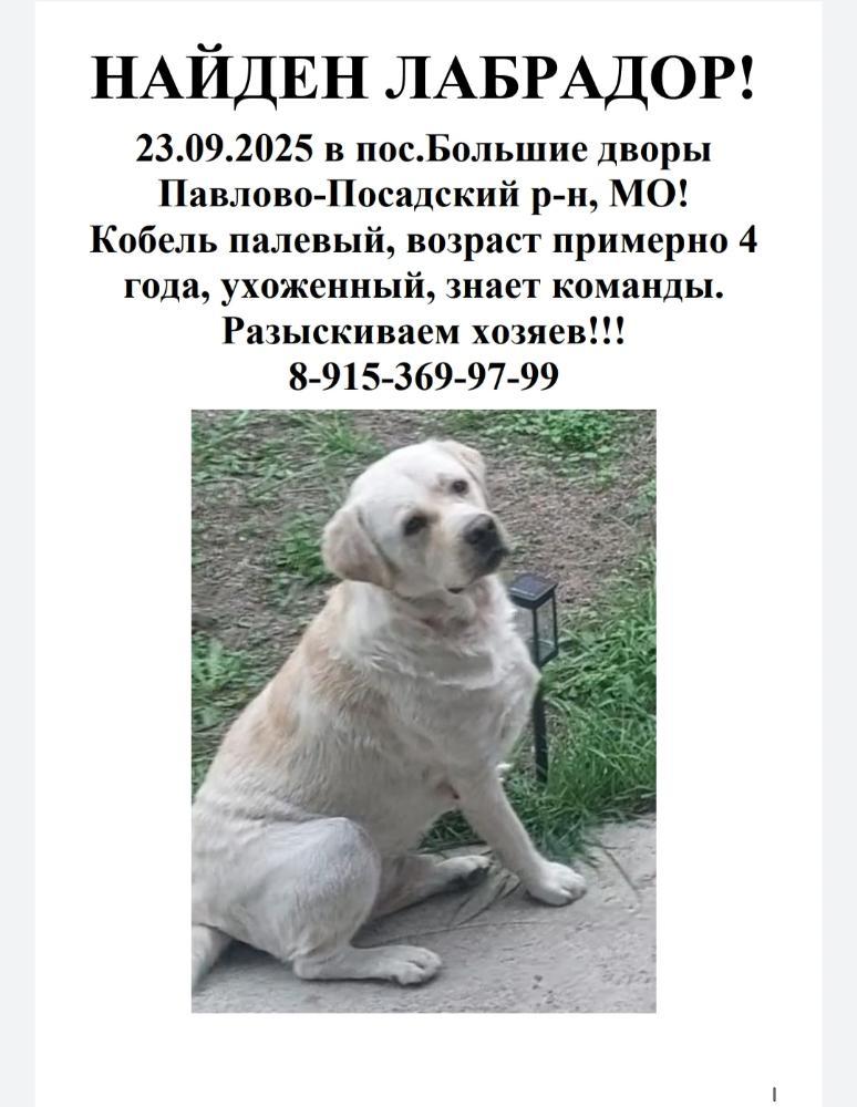 alkor17 Опубликовано 25 сентября Опубликовано 25 сентября Палевый мальчик, найден в пос.Большие дворы, Павлово-Посадского района МО. Клейма, чипа нет, его осматривал ветеринар, есть след от ошейника, собака знает команды. Кастрирован. Крупный, очень большая голова, худоват, и по ощущениям не один день бегал, какой-то пыльно-грязный. Люди нашедшие держать его не могут, уже обзванивали приюты... Размещали везде где могли, отклика от хозяев нет! Очень нужна передержка!!! P/S Мальчик сейчас у меня на даче, но только до выходных, иначе меня саму выгонят из дома !!! https://vk.com/wall-177084637_52509 пост о нём Также очень нужна помощь с размещением информации и поиском старых хозяев! 4 3