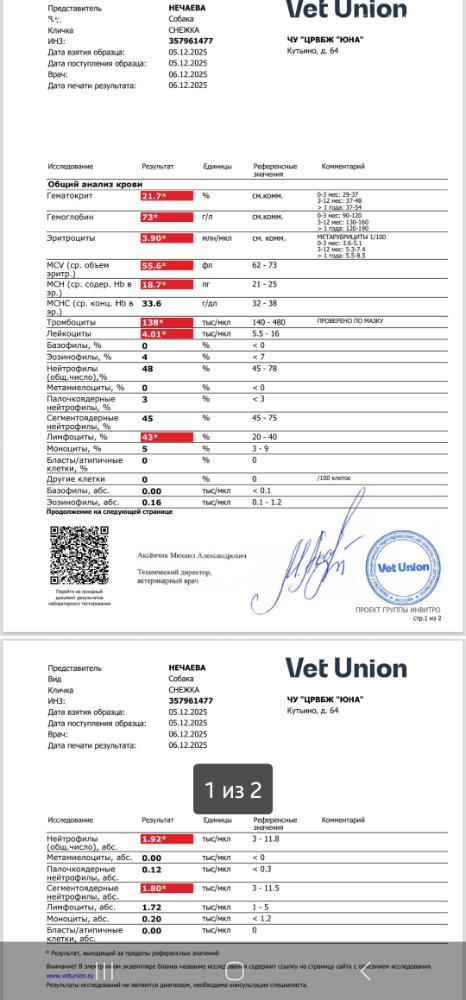 Нечаева и Ко Опубликовано 6 часов назад Опубликовано 6 часов назад Из клиники: " Просим согласовать Снежке цистоцентез для взятия мочи на ОАМ, СБК и бакпосев." Дала добро. Долго говорила с врачом. Возможно , никакой милтефоран ей не давали, и не делали. То есть, скорее всего, не давали и не делали. 1 1