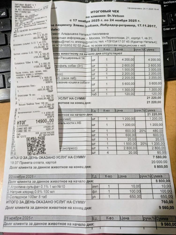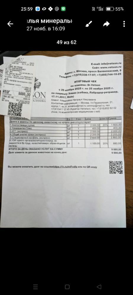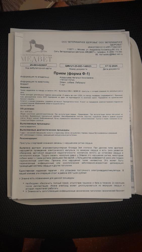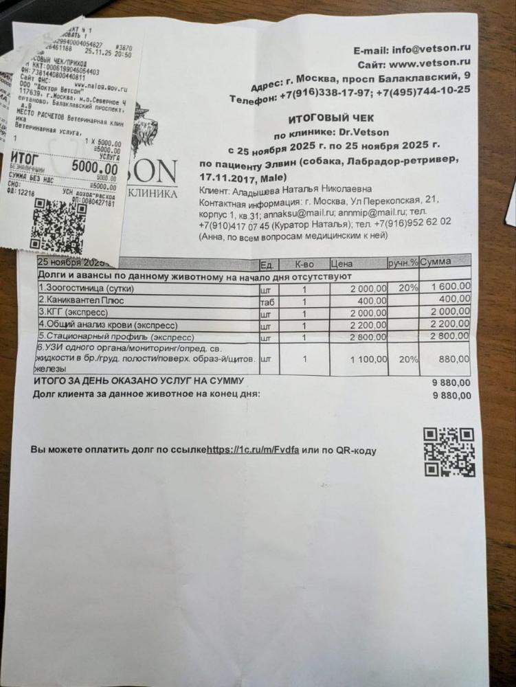 Шумахер Опубликовано 28 декабря, 2025 Опубликовано 28 декабря, 2025 (изменено) Оплата стационара . Остаток из темы 2176 внесён . Чек прикладываю остаток по теме -0 . Всю помощь можно отправлять на прямую Натальи . Реквизиты чуть ниже. ……… Дорогие друзья!……… ✨Новости о лабрадоре Элвине из Минвод!✨ Мы от всего сердца благодарим всех, кто помог собрать деньги на обследование, содержание и подготовку к операцию по установке кардиостимулятора. Были использованы все собранные средства. Кардиостимулятор установлен, операция оплачена человеком с большим сердцем! ✨У Элвина появился шанс ЖИТЬ!✨ Сердце его теперь бьется в постоянном ритме. Но операция такая - пол дела, чтобы наши общие усилия не пропали, нужна реабилитация на месяц: проживание строго в клетке в условиях минимальной активности и круглосуточного мониторинга ( плюс терапия), поэтому необходим стационар! 🙏Мы снова обращаемся к вам. Абсолютно безвозмездно, кто сколько может - даже 100 рублей в нашу копилку имеют смысл. Заранее благодарим - ведь это еще один шаг к полноценной жизни нашего добродушного парня. Сбор на Сбере https://messenger.online.sberbank.ru/sl/Q7QFDhazFyZb3JGyt По номеру куратора Наталья Николаевна А. +7(910)417-07-45……… Дорогие друзья!……… ✨Новости о лабрадоре Элвине из Минвод!✨ кто хочет поучаствовать в помощи на оплату стационара,прошу отправлять помощь по номеру телефона который написан выше. С пометкой форум. И ник на форуме. Спасибо большое. С Уважением Шумахер. Изменено 28 декабря, 2025 пользователем Шумахер