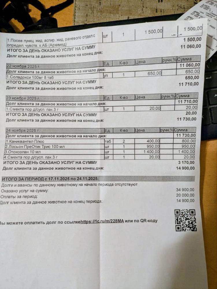 Шумахер Опубликовано 9 декабря, 2025 Опубликовано 9 декабря, 2025 Остаток 3202 . Расход Капли ушные -2440 Остаток 762. Наши нужды. Ещё прописана одна блокада. Сдача анализов к 20 января. Биохимия и Клинический анализ крови. Капли адвокат на холку. Нам нужно помощь в районе 10000. Реквизиты помощи номер телефона привязан к карте сб на имя Елена Алексеевна И.8968 634 67 79 с пометкой Элвин. Заранее благодарю. С Уважением Шумахер. 1
