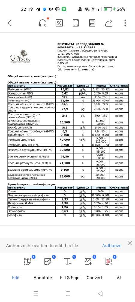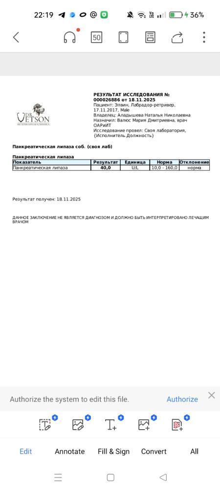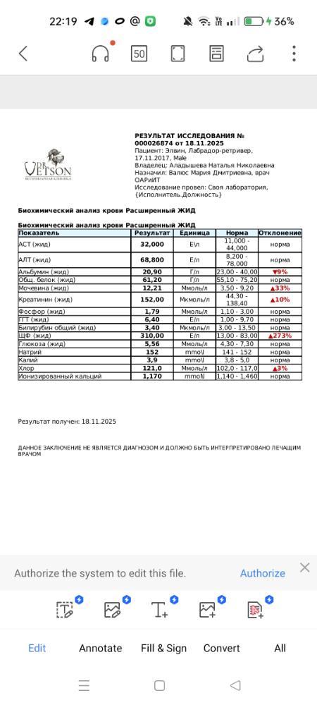 Шумахер Опубликовано 18 ноября Опубликовано 18 ноября Скопировала из чата по Элвину. 1. По поводу диро. На Эхо крупных диро не выявили, в мазках мелких - тоже. Сдали на ПЦР, ждем рез-т 2. ОАК норм это хорошо, сдавали панкреатиин.фактор - тк были подозрения на УЗИ, но оон в норме 3. Посмотрели шишку на боку, скорее всего липома, взяли биопсию вопросы 1. Есть узелок на надпочечнике, надо будет наблюдать, если не растет - оставить 2. Затемнения в легких подозрение на бронхит, она спрашивала - был ли до поездки кашель, я рассказала, что был они будут решать - давать ли еще другой АБ или ингаляции с АБ не очень хорошее(( при обследовании сердца обнаружена проблема, которая требует дальнейшего наблюдения, возможно придется вешать холтер - я спросила - не будет ли это противопоказанием для кастрации ( из-за наркоза), она ответила, что я права, поэтому необходимы дополнительные анализы по сердцу - спец тесты, если будут отриц, то тогда собаке монтируется кардиостимулятор ( не представляю ск это может стоить...) и тогда можно проводит кастрацию