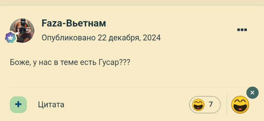 Катя и Гусь Опубликовано Вторник в 14:37 Опубликовано Вторник в 14:37 1 час назад, Faza-Вьетнам сказал: Молчи уж. Ты со своими гусями, утками и гусарами всех запутала с концами. Толку-то что ты Катя 😁 Вот как мне это в том году помогло с учётом что подарок принесла замаскированный ряженый дед Надя, м? 🤣 А про Катю и не было в подсказке 🤣🤣 я до сих с этого ржу 🤣🤣 6