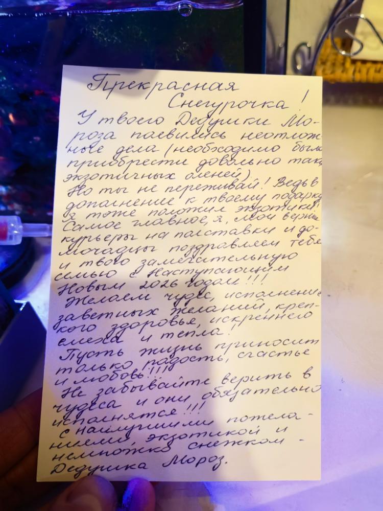 Татьяна_Таймыр Опубликовано 11 декабря, 2025 Опубликовано 11 декабря, 2025 (изменено) 16 часов назад, kittik сказал: Снегурочке просто работать часов до 6 утра😁 нужно было собачек прогулять 😊 Неужели @Татьяна_Таймыр Да! Очень быстро вычислили. 🙈Не сильно за шифровался я как дед 🤣🤣🤣 было сложно, но я постаралась открыткой и колбасой дать жирный намек. Муж старался отправляя посылку, чтобы пришла в срок 🤩😎 Изменено 11 декабря, 2025 пользователем Татьяна_Таймыр 10