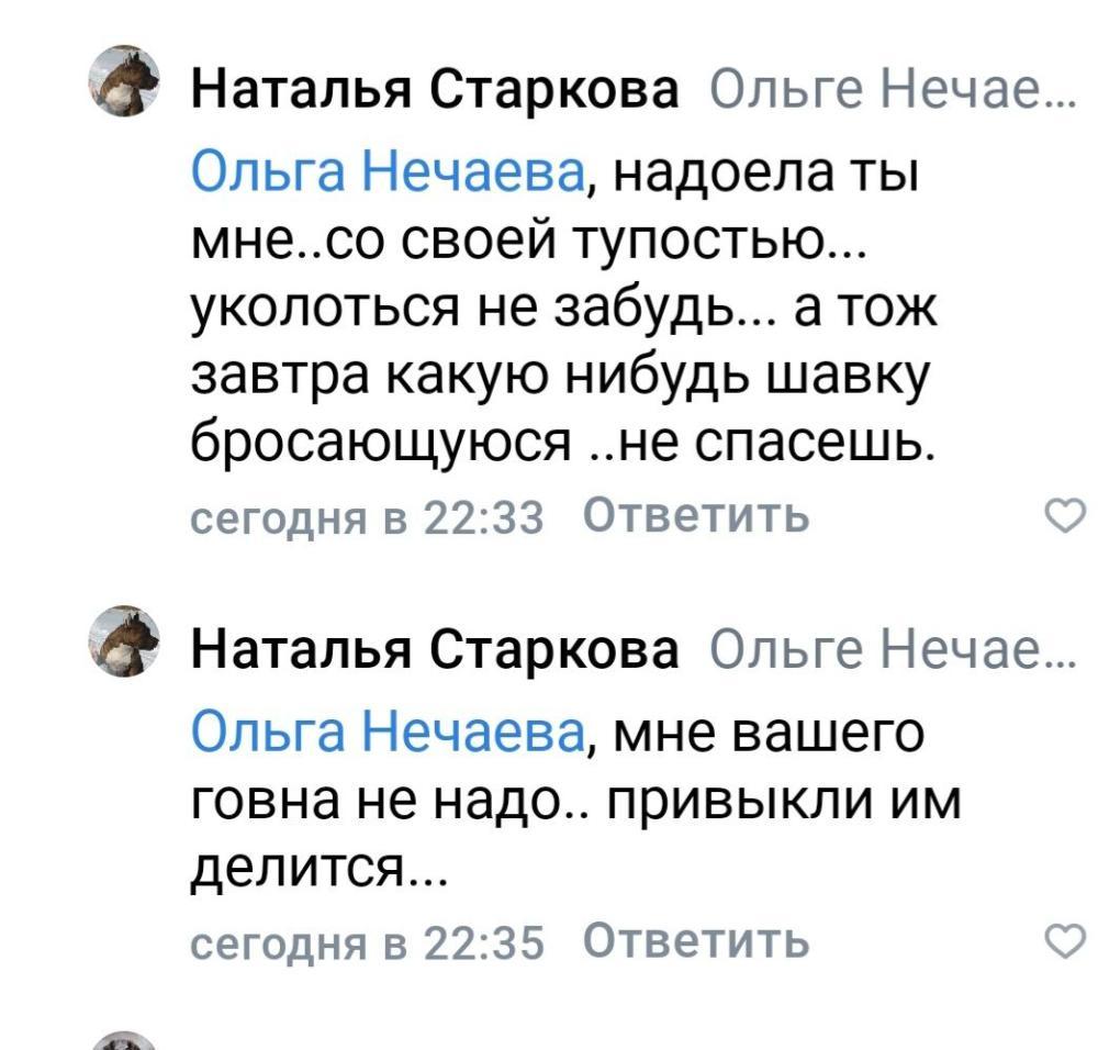 Коробкова Ирина Опубликовано Пятница в 08:59 Опубликовано Пятница в 08:59 48 минут назад, Катерина Mark сказал: Ольга это где такое 😱 у вас на странице? Я в шоке. Первый раз такое вижу. Не первый раз вывозим. Но чтоб такое 😱 А ведь самое главное. НЕ ОНА ЕЕ притащила сюда, а только взялась исправить ситуацию и помочь. И такое получила 1