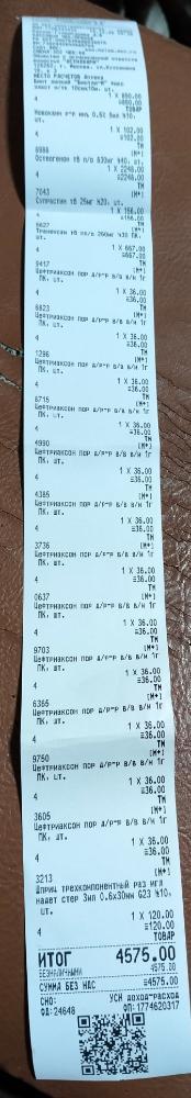 wina Опубликовано Воскресенье в 20:48 Опубликовано Воскресенье в 20:48 Чек за лекарства рекордной длины, 4575. И остеогенон или остеонорм придется докупать, его на 20 дней пока. 4