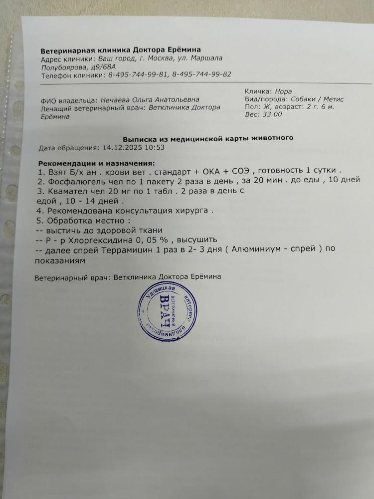 Фаби и Варя Опубликовано 14 декабря Автор Опубликовано 14 декабря (изменено) Всем здравствуйте. Какие новости у нас, Дмитрий Андреевич посмотрел Нору ( так решили её назвать), готов взять её сегодня после 18ч на операцию, кардиолог дал добро на операцию, сделали УЗИ брюшной полости всё достаточно не плохо, за исключением, что Нора в течке( как всегда вовремя). После операции Лена @wina заберёт Норочку к себе. Анализы + кардиолог+ УЗИ+ ренген оплачен ( жду чеки) На операцию нужно примерно 35000р Друзья и гости форума! Помогите нам пожалуйста, будем признательны любой помощи. СБ 4276 3800 4869 9495 ВТБ 2200 2458 0021 3261 или по номеру телефона 89153578481 Ольга Вячеславовна Т. с пометкой Нора Изменено 14 декабря пользователем Фаби и Варя 6