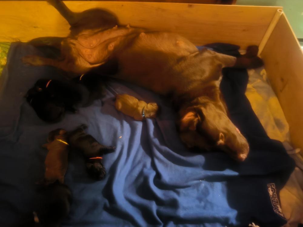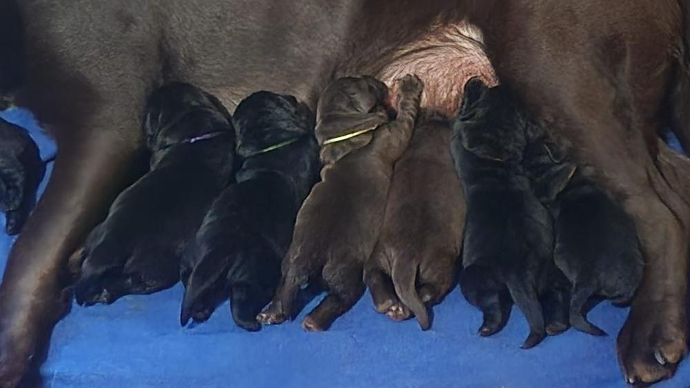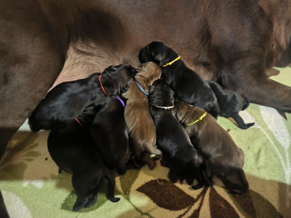 taf82 Опубликовано 17 января Опубликовано 17 января (изменено) Всем привет, а у нас пополнение! 3 января Шанечка и Фил стали родителями 8 прекрасных деток! У нас в помете 3 черных девочки, 3 черных мальчика и 2 шоколадных мальчика. Шоколадной девкой в этот раз меня обделили))) Шаня решила, что пока не нать ещё одну собачку))) Кто там у нас хотел прекрасный черный бриллиант? Изменено 17 января пользователем taf82 17