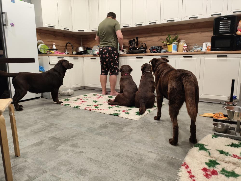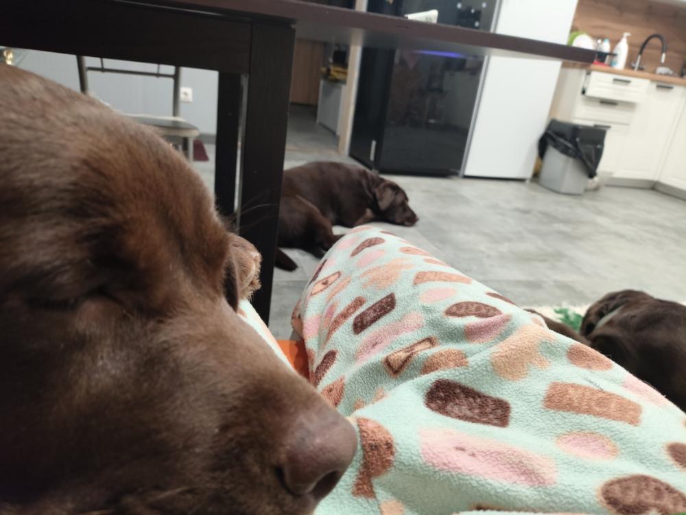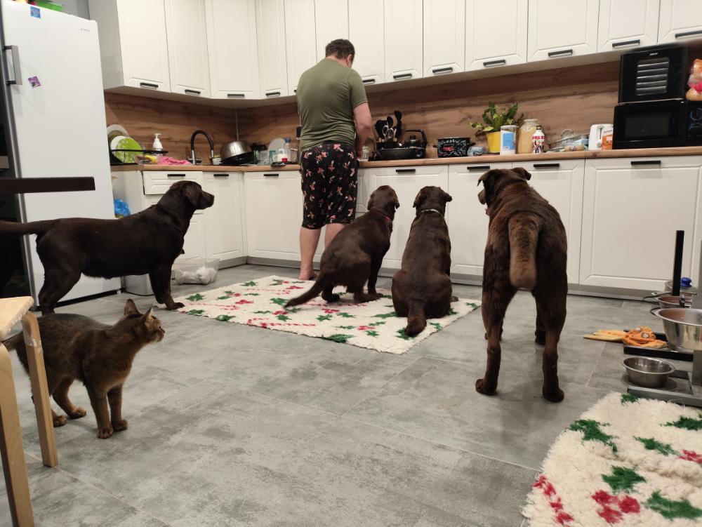 Черри Бренди Опубликовано 11 марта Автор Опубликовано 11 марта Итак: заимела я тут кобеля невзначай.... Поехала на шоколадную суку Лабрадора, а привезла фенотип шоколадного кобеля... Мальчишка лет 7-9, чистый, ошейник кожаный (мама дорохая), пахнет свежими каплями, когти - идеальные, зубы (сцуко, мне бы такие) морда лисья, уши - отпад... А тело и хвост - шоколадный лабрадор. Дома звиздец, муж ругается, дети (старшие) бухтят, малышня - радуется (очередной собаке в этом дурдоме). Мужик умен (знает команды) аккуратен (пьет Аки Бог, в отличии от моих лаборских морд), коты его не интересуют совсем, с детьми прям очень аккуратен (особенно с моей младшей уроганшей). Есть один минус - прям истерика у него с утра, когда я с детворой собираюсь уезжать. Он скачет, ноет, отгоняет меня от двери, хватает детей за комбезы и всячески не пускает 🤣🤣 9 1