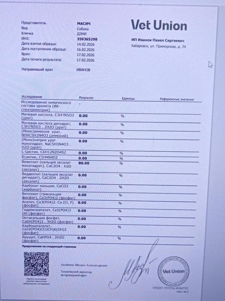 Julia_87 Опубликовано 18 февраля Автор Опубликовано 18 февраля Добрый день! Пришел анализ камней. Как теперь подобрать корм. На прием пойдем 28 февраля только