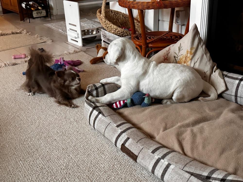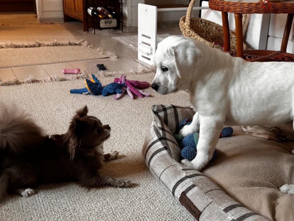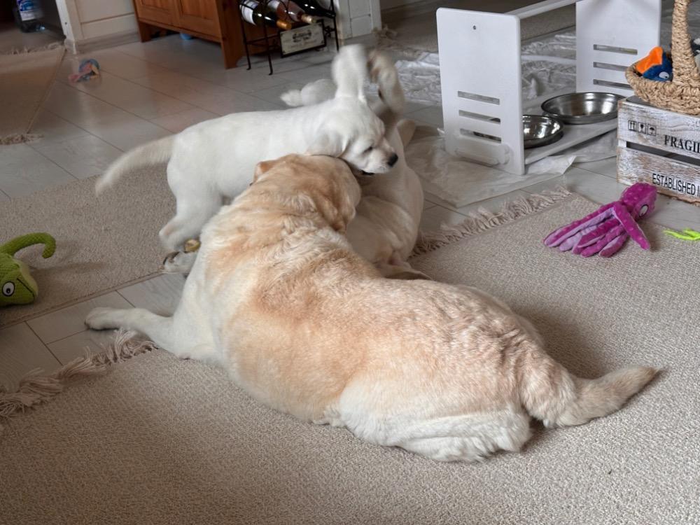 Gerda&Маняша Опубликовано Воскресенье в 18:49 Автор Опубликовано Воскресенье в 18:49 Мишель оказалась не из пугливых! Да, первые минуты встречи были для нее наверное испытанием неизвестностью и напором Лилуши, но, спустя некоторое время они прекрасно вместе играли и бесились! Лилушик, конечно же, на правах заместителя руководителя прайда, временами пыталась построить Мишельку и показать, кто все таки больше, сильнее и круче, но, как говорится, на каждую Фрекен Бок найдётся свой Карлсон ( или Бэтмен)🤣 В общем Мишель себя в обиду не давала! Как только Лилуша начинала качать права, Мишка тут же принимала вызов, начинала махать лапками и приходилось уже вмешиваться , чтоб дело не дошло до детской комнаты полиции🤣 Забавные, смешные, одна ещё совсем глупыша, вторая- премудрая😆, знакомство произошло, теперь будут притираться! Но ,я так думаю, что все равно, Лилушик задавит своей харизьмой😆 и будет Мишелька шагать строевым строем , как и все личные лабрадоры маленькой Блошки😁 14 7