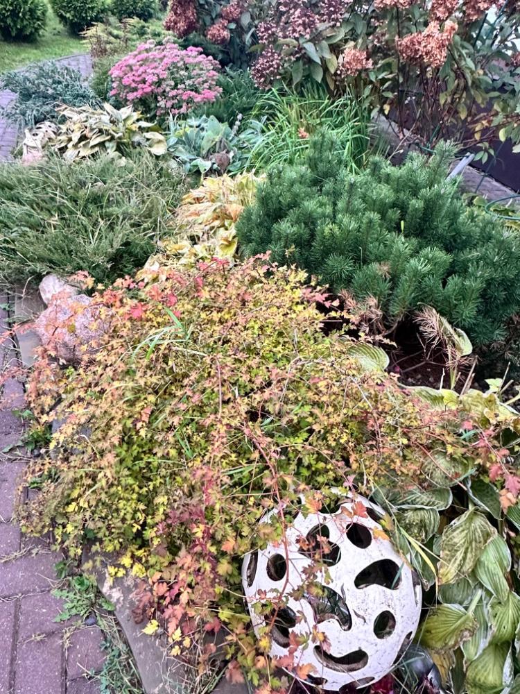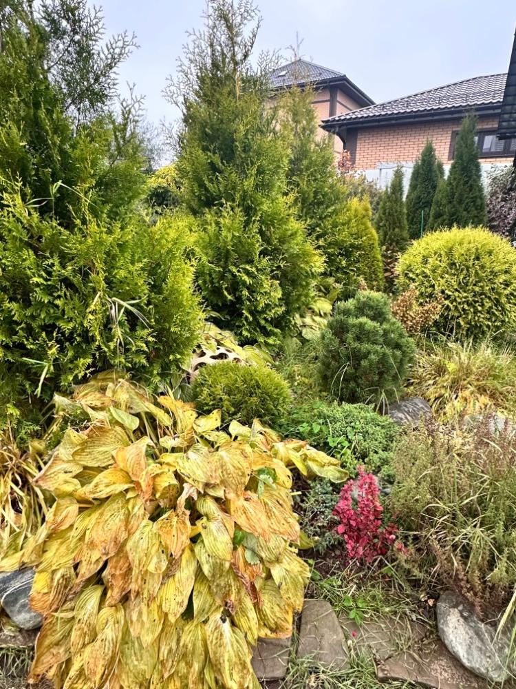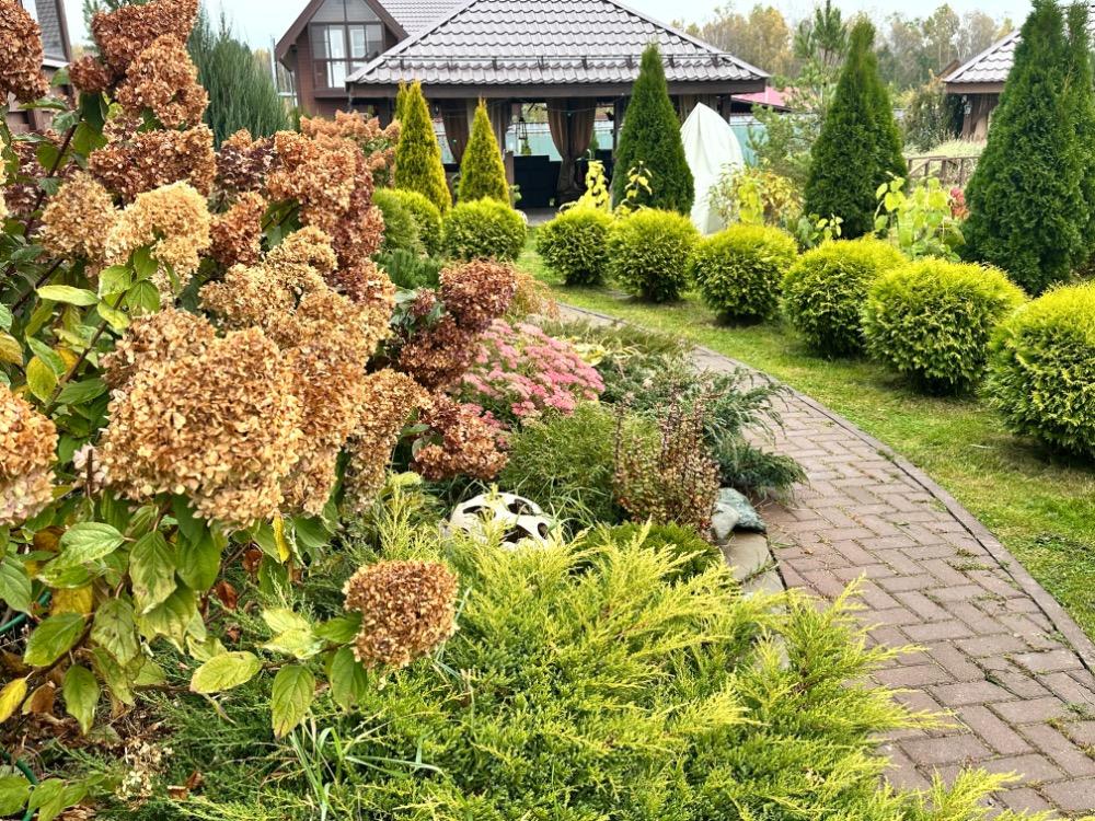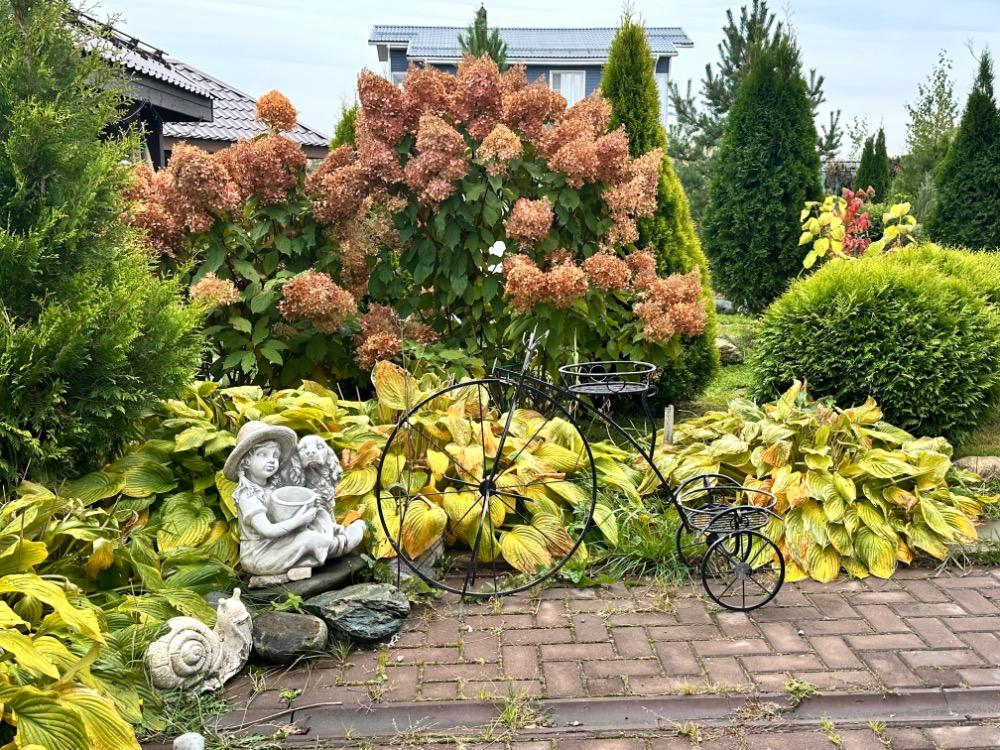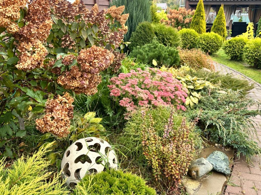 Gerda&Маняша Опубликовано Понедельник в 19:19 Автор Опубликовано Понедельник в 19:19 Осень набирает обороты, октябрь еще порадует красками, а после уж наступит сезон монохромного безвременья… Гортензии все побурели, но пока не портят сад , хорошо сочетаются с осенней гаммой спирей и барбарисов. Начинаю потихоньку срезать шапки , но не все, пусть кусты ещё постоят, пока дожди совсем уж не испортят их пышность. И даже поникшие и пожелтевшие хосты ,красиво оттеняют вечнозеленые! Жаль, что так быстро пролетает красивое время тепла и разноцветья природы.. 14