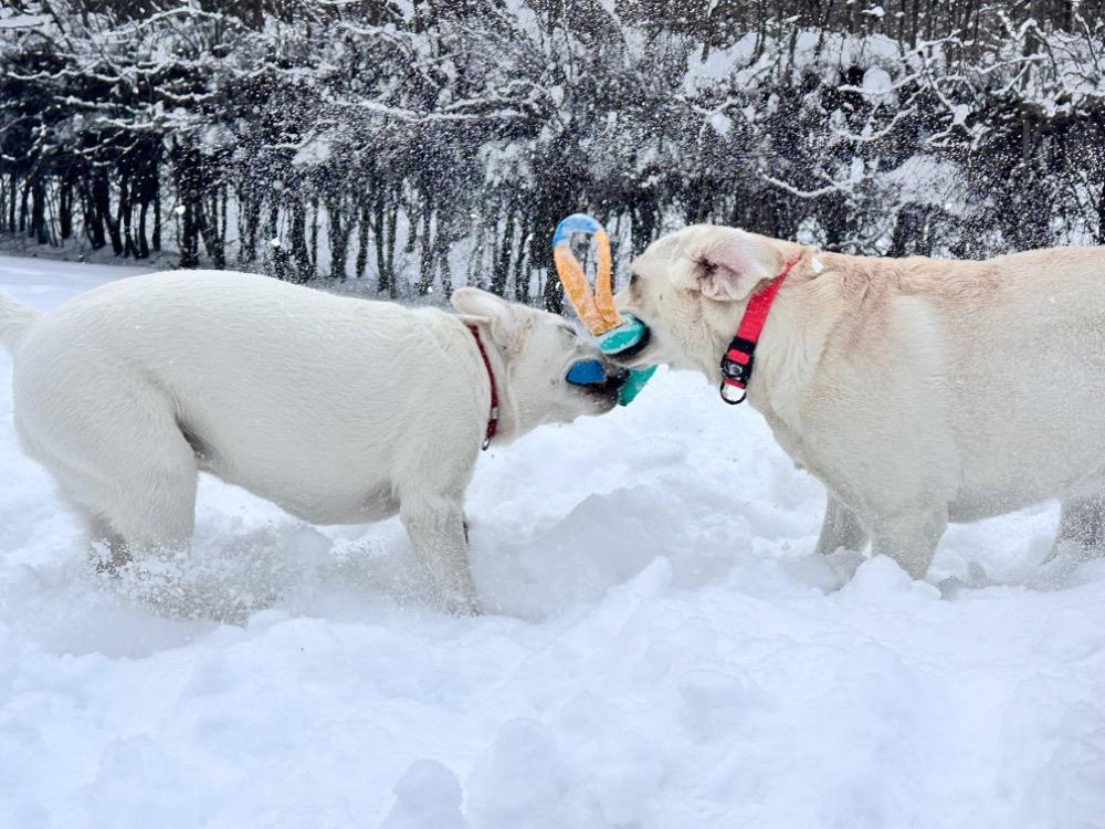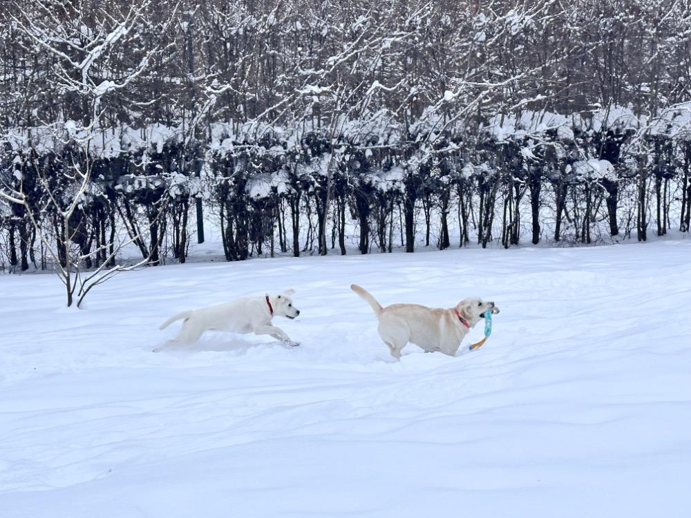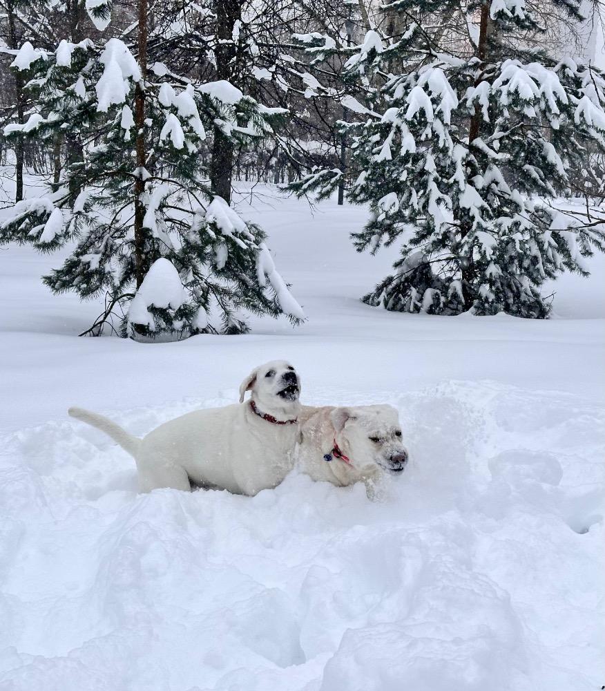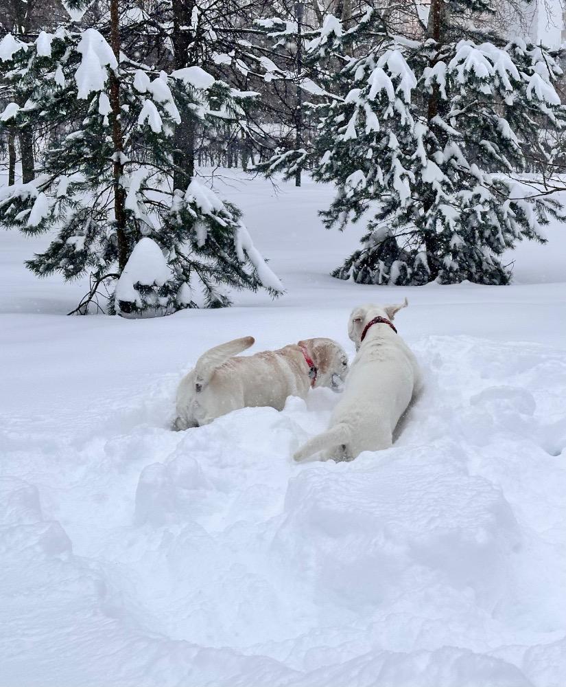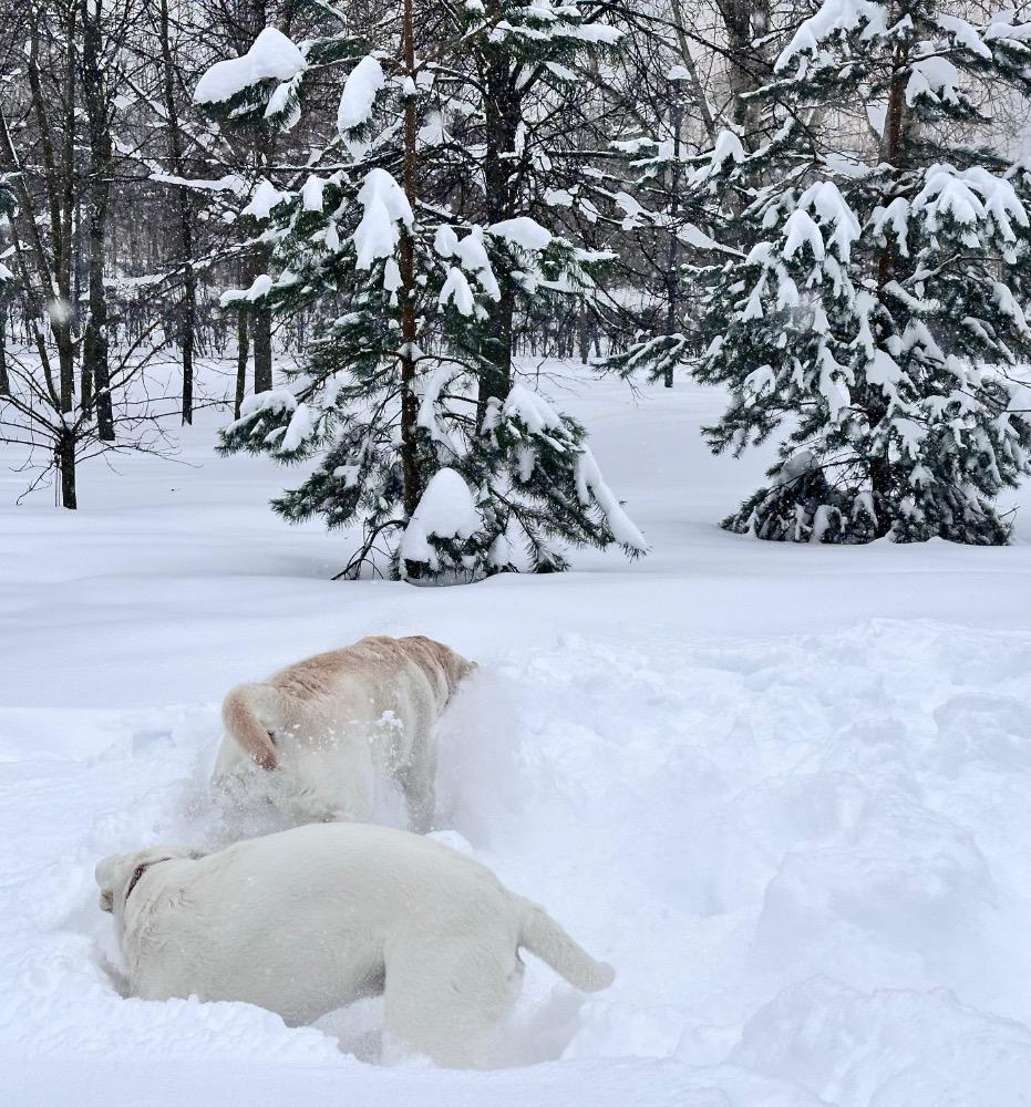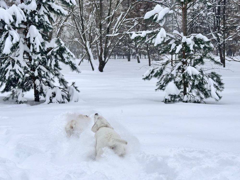 Gerda&Маняша Опубликовано 12 января Автор Опубликовано 12 января Девчонки продолжают наслаждаться снежным коллапсом😁 Играют в снежки,роют туннели в сугробах, играют в перетяжку и в догонялки! В снежки Поляшика не обогнать!😁 Она, как пантера ,бросается за ним в погоню, практически взлетая над сугробами! Мишка ещё не освоила такой прием , и висит на хвосте😅 Приходится мне кидать снежки в разные стороны, чтоб маленькому медвежонку было не обидно все время оставаться с носом😁 А вот в игре в перетяжку, Мишка частенько отнимает добычу у Полечки! Сильная, упертая в своей борьбе , ни за что не хочет уступать! И, я так думаю, что Поляшик , иногда и просто отдает ей эту палку -кидалку, как заботливая маманя, чтоб дите не расстраивалось🤣 Наблюдать за ними одно удовольствие! Сильные, задорные, они ,как две тюленьки, легко скользят по снежным волнам, фыркая от удовольствия и от снежных брызг! 12