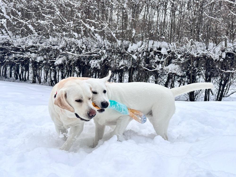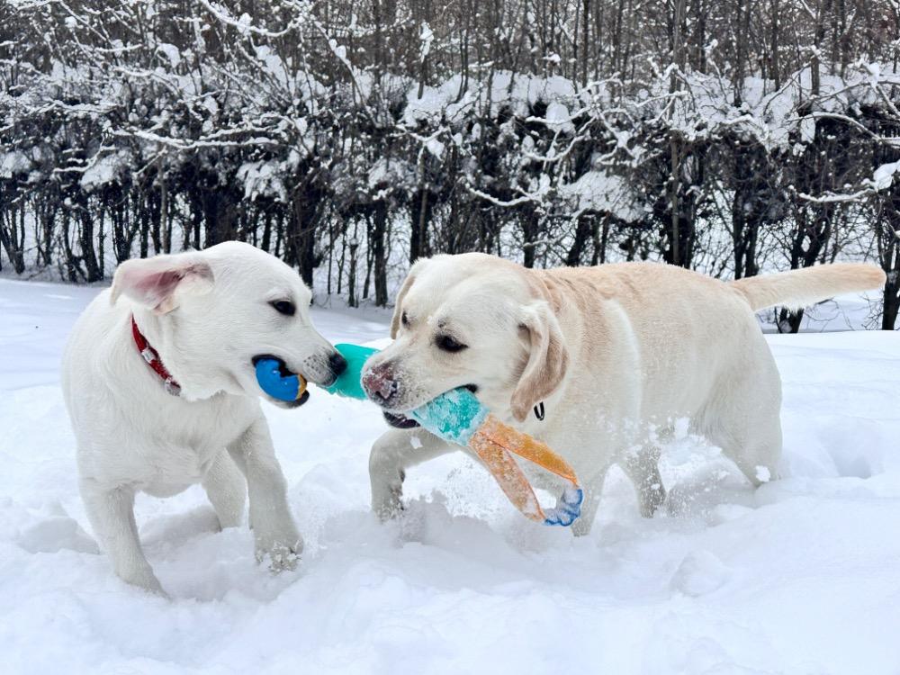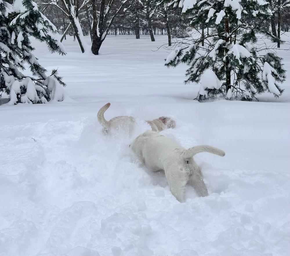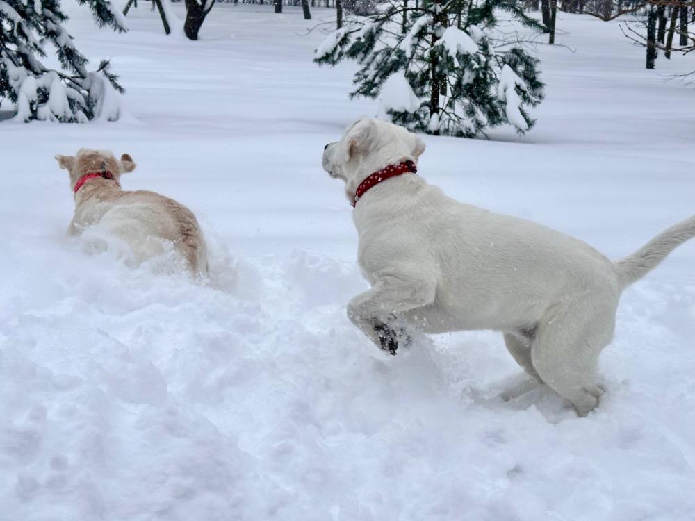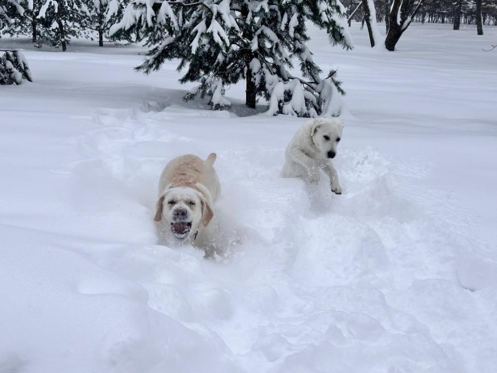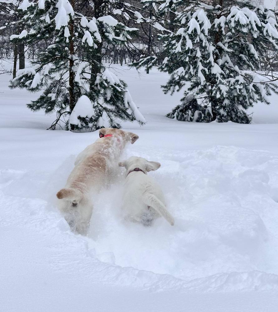 Gerda&Маняша Опубликовано 12 января Автор Опубликовано 12 января Девчонки продолжают наслаждаться снежным коллапсом😁 Играют в снежки,роют туннели в сугробах, играют в перетяжку и в догонялки! В снежки Поляшика не обогнать!😁 Она, как пантера ,бросается за ним в погоню, практически взлетая над сугробами! Мишка ещё не освоила такой прием , и висит на хвосте😅 Приходится мне кидать снежки в разные стороны, чтоб маленькому медвежонку было не обидно все время оставаться с носом😁 А вот в игре в перетяжку, Мишка частенько отнимает добычу у Полечки! Сильная, упертая в своей борьбе , ни за что не хочет уступать! И, я так думаю, что Поляшик , иногда и просто отдает ей эту палку -кидалку, как заботливая маманя, чтоб дите не расстраивалось🤣 Наблюдать за ними одно удовольствие! Сильные, задорные, они ,как две тюленьки, легко скользят по снежным волнам, фыркая от удовольствия и от снежных брызг! 12