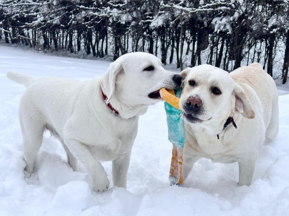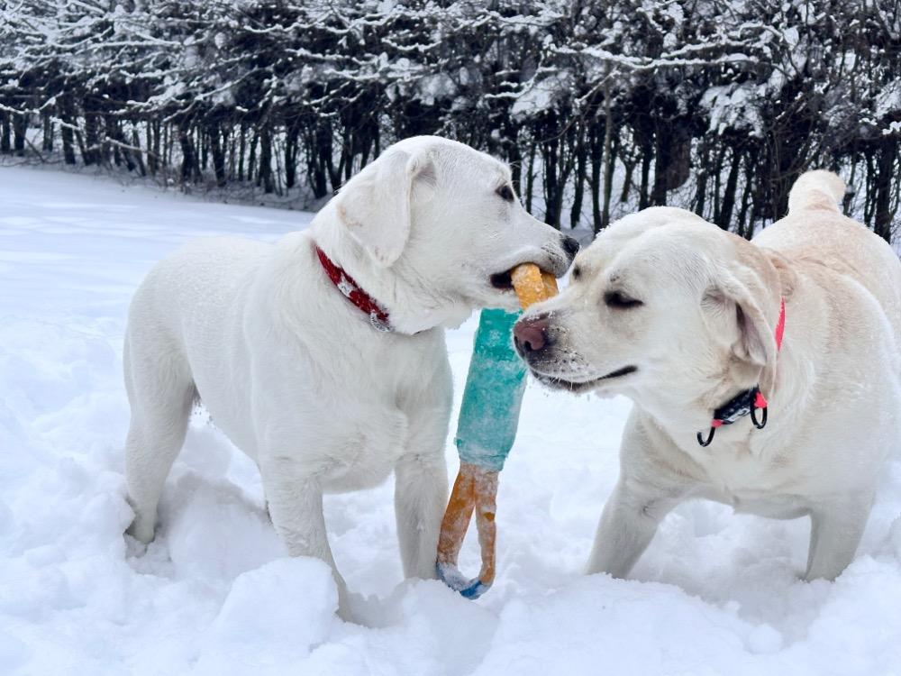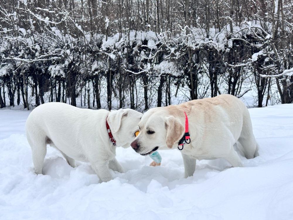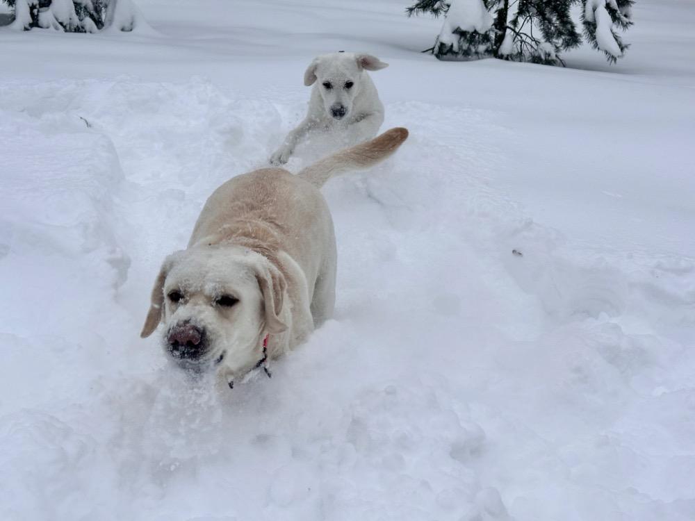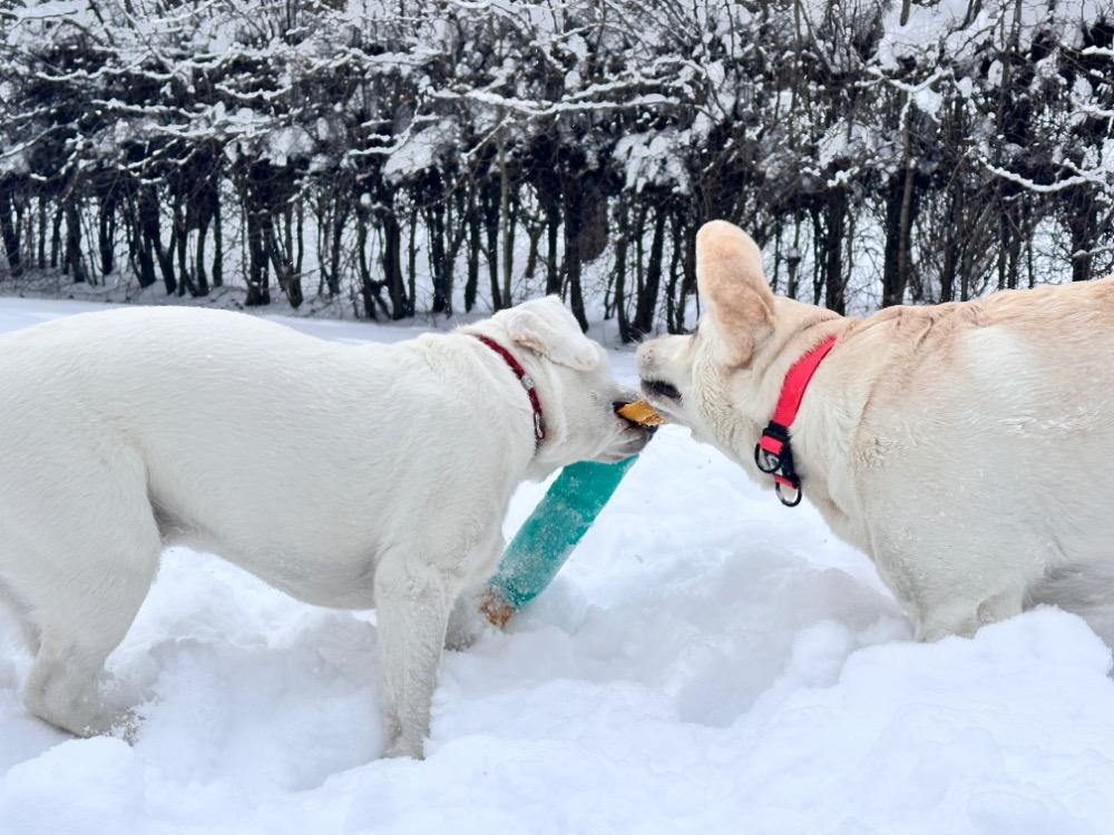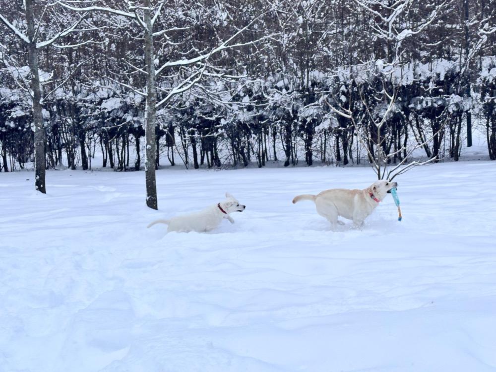 Gerda&Маняша Опубликовано 12 января Автор Опубликовано 12 января Девчонки продолжают наслаждаться снежным коллапсом😁 Играют в снежки,роют туннели в сугробах, играют в перетяжку и в догонялки! В снежки Поляшика не обогнать!😁 Она, как пантера ,бросается за ним в погоню, практически взлетая над сугробами! Мишка ещё не освоила такой прием , и висит на хвосте😅 Приходится мне кидать снежки в разные стороны, чтоб маленькому медвежонку было не обидно все время оставаться с носом😁 А вот в игре в перетяжку, Мишка частенько отнимает добычу у Полечки! Сильная, упертая в своей борьбе , ни за что не хочет уступать! И, я так думаю, что Поляшик , иногда и просто отдает ей эту палку -кидалку, как заботливая маманя, чтоб дите не расстраивалось🤣 Наблюдать за ними одно удовольствие! Сильные, задорные, они ,как две тюленьки, легко скользят по снежным волнам, фыркая от удовольствия и от снежных брызг! 12