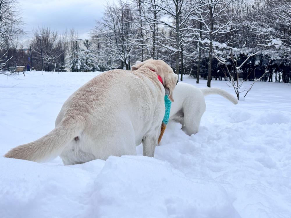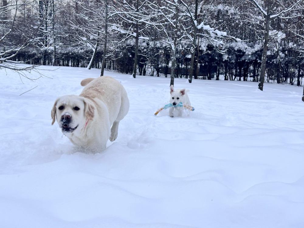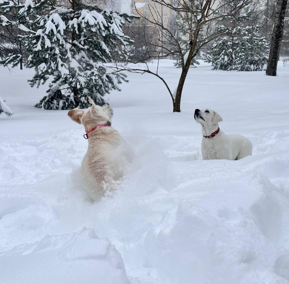 Gerda&Маняша Опубликовано 10 января Автор Опубликовано 10 января 18 часов назад, Эллен сказал: Ой, сколько у вас снега! Красота! Мишенька совсем взрослой уже выглядит. Как быстро летит время! Лена, как пишут и транслируют из всех утюгов, такого не было 70 лет, но вот я точно помню, что в детстве зима в Москве была именно такой, а я ещё не настолько древняя🤣И по тропинкам в школу пробирались , и в сугробах пещеры копали, и во дворах с самого утра всегда были слышны звуки лопаты дворника. Да и не надо так далеко оглядываться, такие же сугробы периодически вырастали и в последние лет десять, точно помню !)) Собакам, конечно, радость и счастье! Ведь вода и снег, это две стихии, которые лабры просто обожают! Мишка уже прям настоящая собака! Она конкретно подросла, уже не знаю сколько весит , так как, на ручки не поднять! Набирается ума и уже, конечно, намного легче с ней и дома, и на улице. Перешли на трехразовый выгул , никаких пеленок и проблем с туалетом, а это прям реально праздник жизни! Теперь мечтаю о двухразовом выгуле, зима совсем не мое время жить на улице😁, хотя обожаю гулять и ходить на дальние расстояния . В общем потихоньку движемся с Мишелькой к званию воспитанной леди)) 8