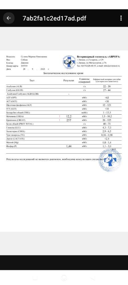 Марина&Дженни Опубликовано 28 сентября Автор Опубликовано 28 сентября (изменено) Спасибо всем, кто переживает ! Когда 9 июля после недели капельниц показатели были креатинин- 840, мочевина- 44, мы стали прощаться( Но наш врач ( может я рассказываю это уже повторно, простите), сказал дай мне 10 дней-не поможет тогда все. И спасибо ему огромное, низкий поклон. Мы живём три месяца и теперь сдаваться не собираемся))) Изменено 28 сентября пользователем Марина&Дженни 9