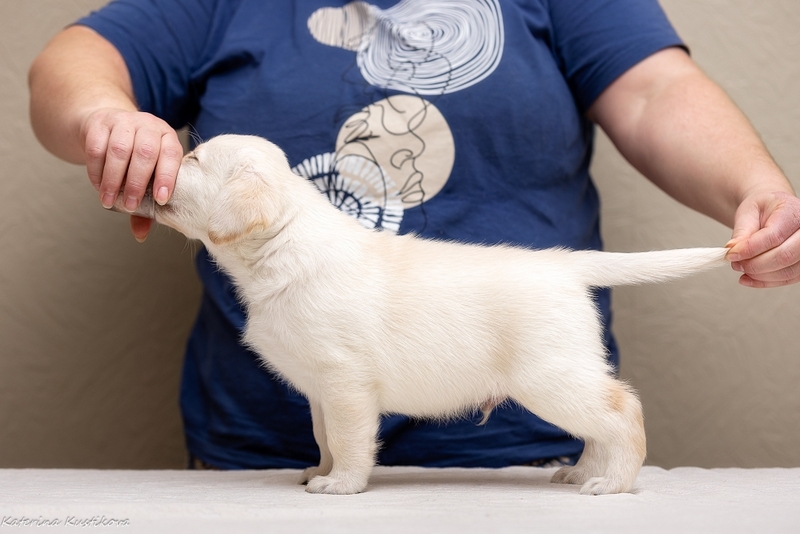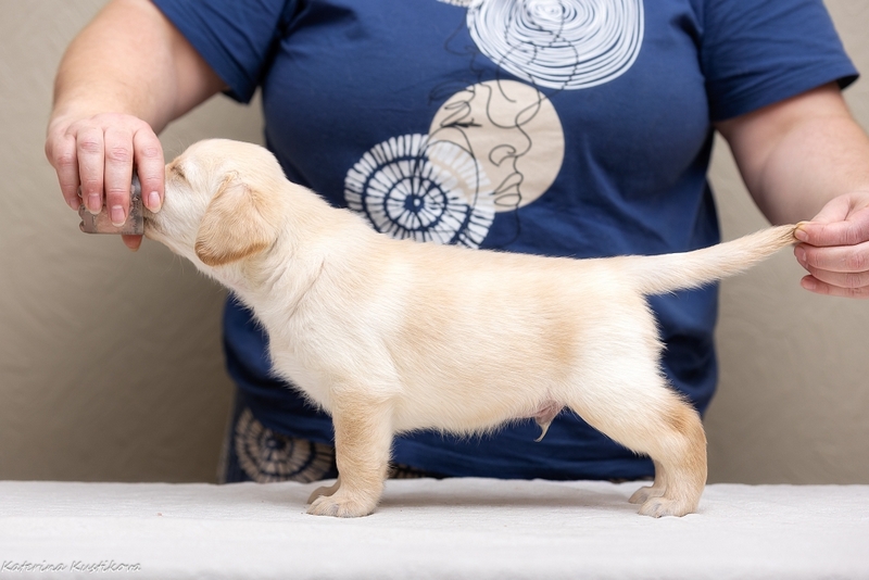 ЛАВИНТА ДОЛЬЧЕ ВИТА - молодая производительница питомника. Происходит от импортных производителей. Красивая сука с великолепной породной шерстью, чистых линий, хорошим объемом и костяком и «сладкой» лабрадорской головой, породным темпераментом.