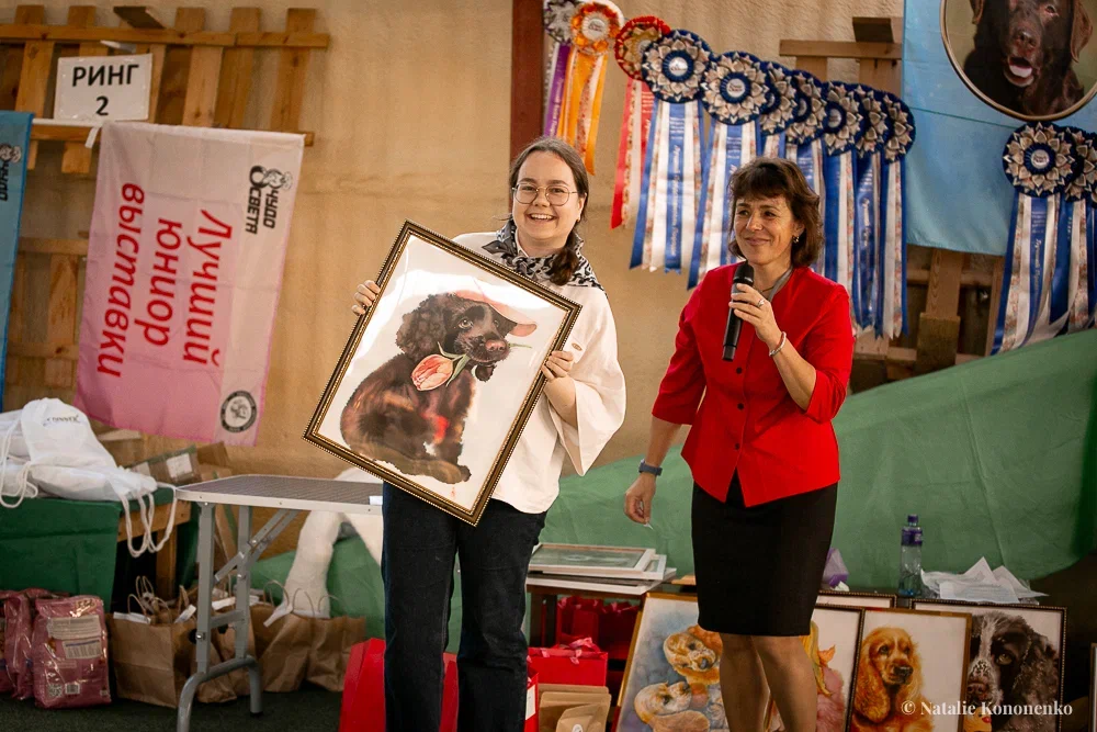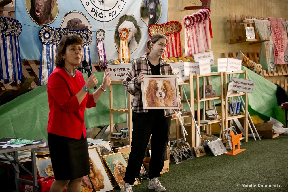 В рамках Чемпионата мы провели нашу традиционную полюбившуюся всем лотерею. На ней разыгрывались подарки от РРК, от бренда "МосПёс" (владелец Татьяна Бурда) и красивейшие картины художницы-анималиста Натальи Соловьевой, которые привезла на нашу выставку Елена Васевникова.